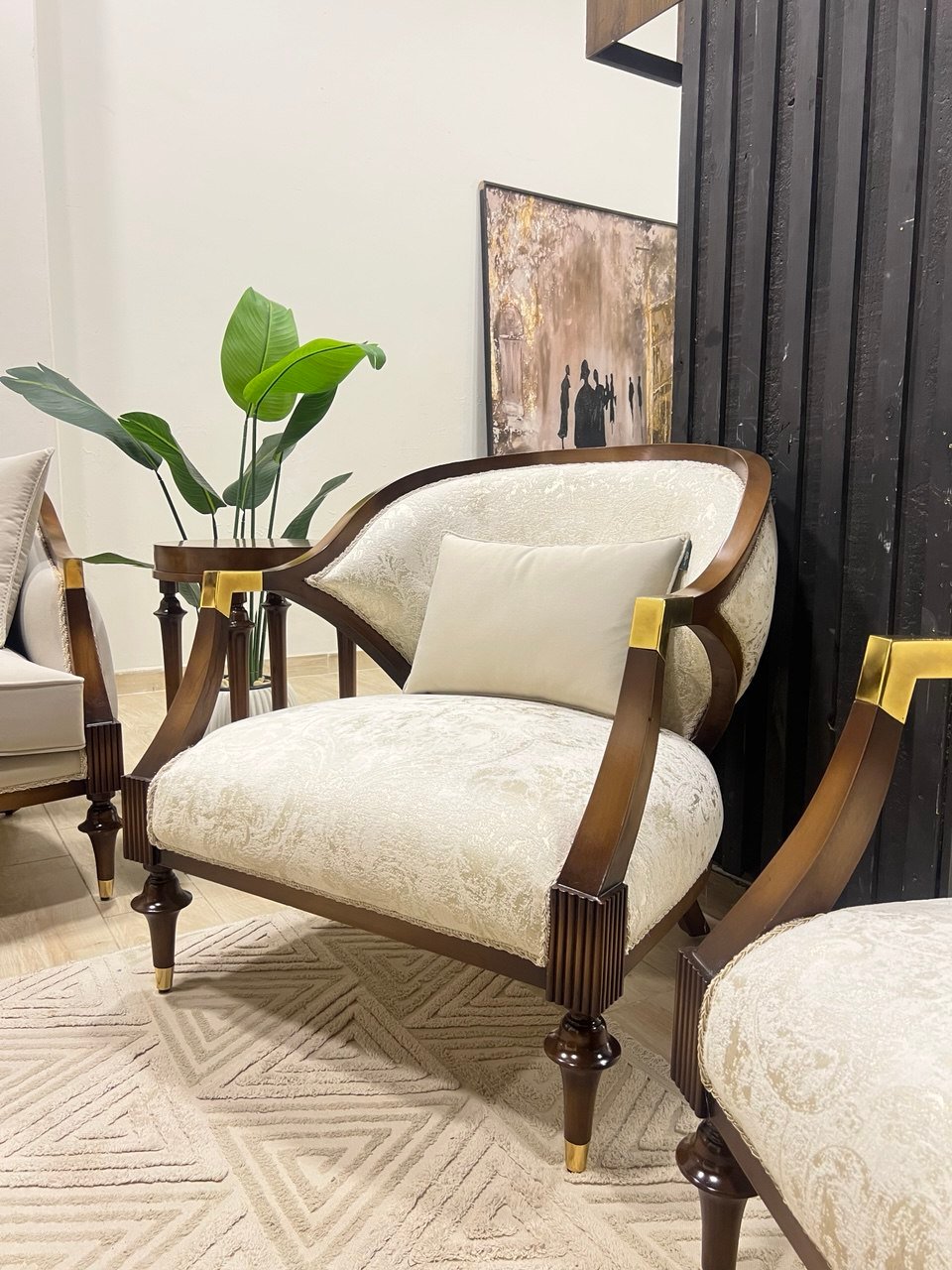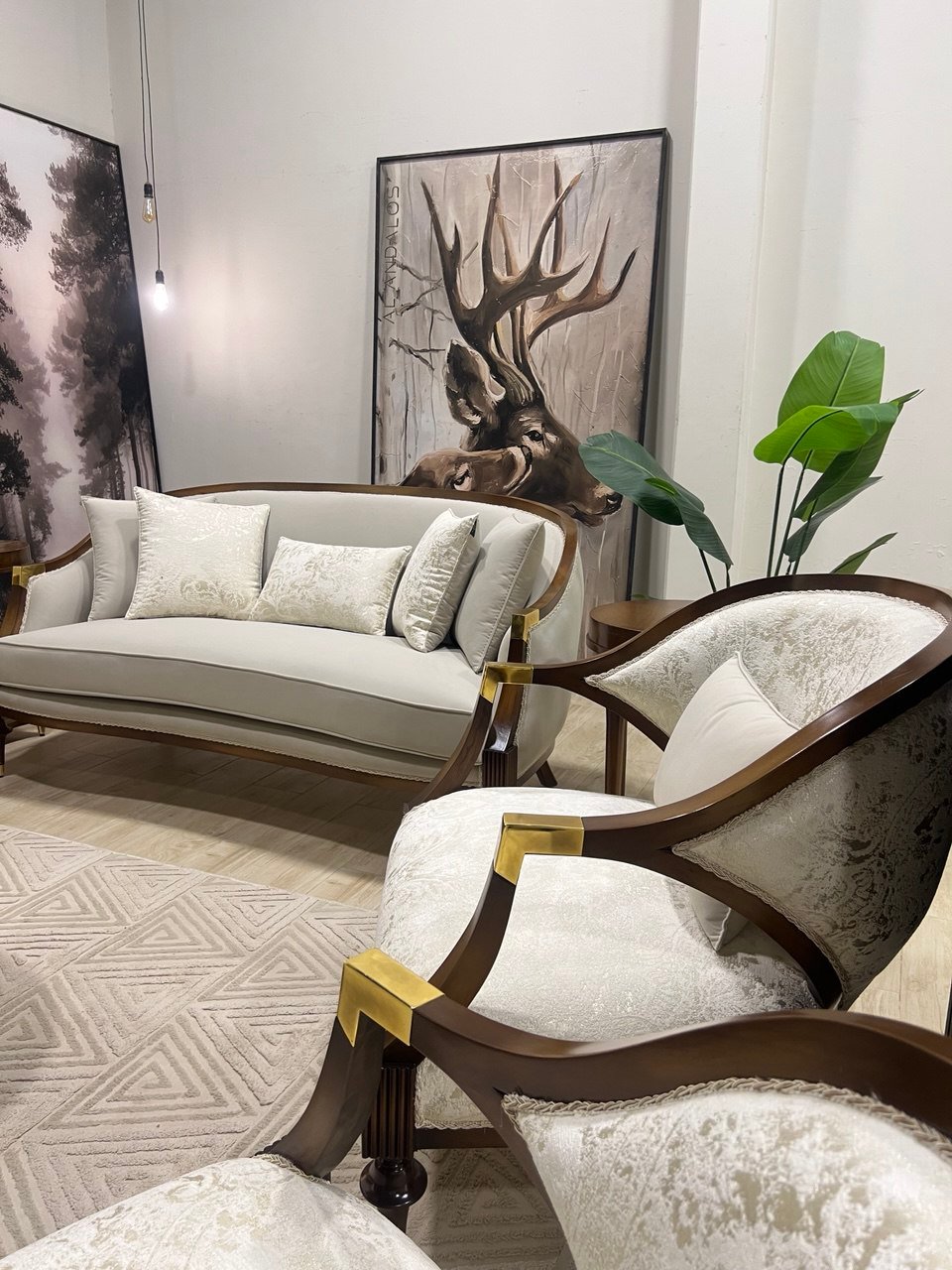 صالون كريستال مش مجرد صالون… ده بيان فخامة. لون بني مميز بتشطيب راقٍ، وتداخل الجولد في التفاصيل بشكل مدروس يخلي القطعة كلها تنطق رُقي. التصميم هنا مش للعرض بس… التصميم معمول علشان يسيب أثر، ويعلن إن البيت ده ذوقه عالي ومش شبه أي حد.
