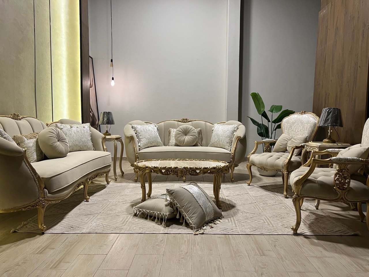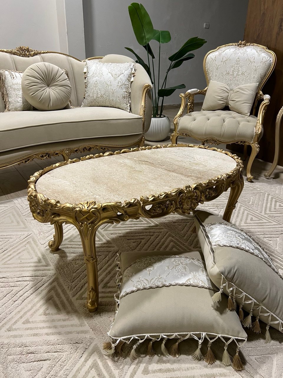 2فوتيه + كنبة 4مقعد + كنبة 3مقعد + تربيزة وسط .