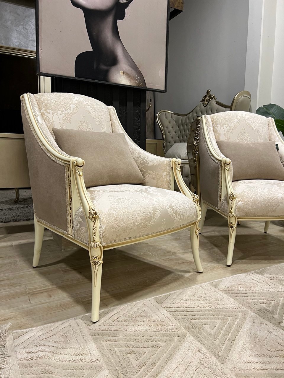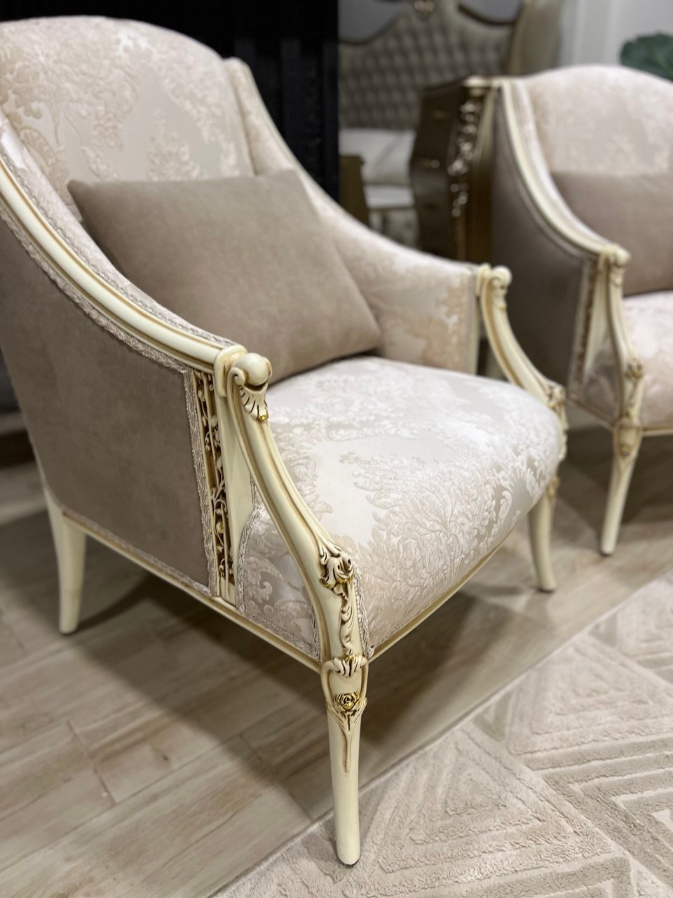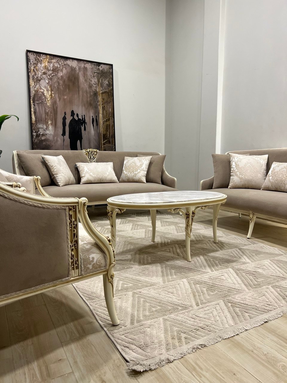 بتصميم نيوكلاسيك راقٍ وتطعيمات ذهبية هادئة مدروسة بعناية، صالون لوميير | Lumière بيقدّم توازن مثالي بين الرقي والنعومة. كل تفصيلة معمولة بذوق عالي بدون صخب، من انحناءات الخشب الأنيقة لحد الأقمشة المختارة بعناية علشان راحة تدوم وشكل يحافظ على فخامته مع الوقت.