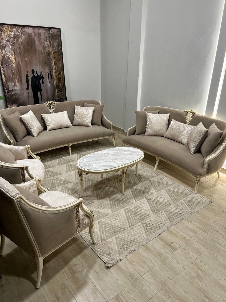 2فوتيه + كنبة 4مقعد + كنبة 3مقعد + تربيزة وسط .