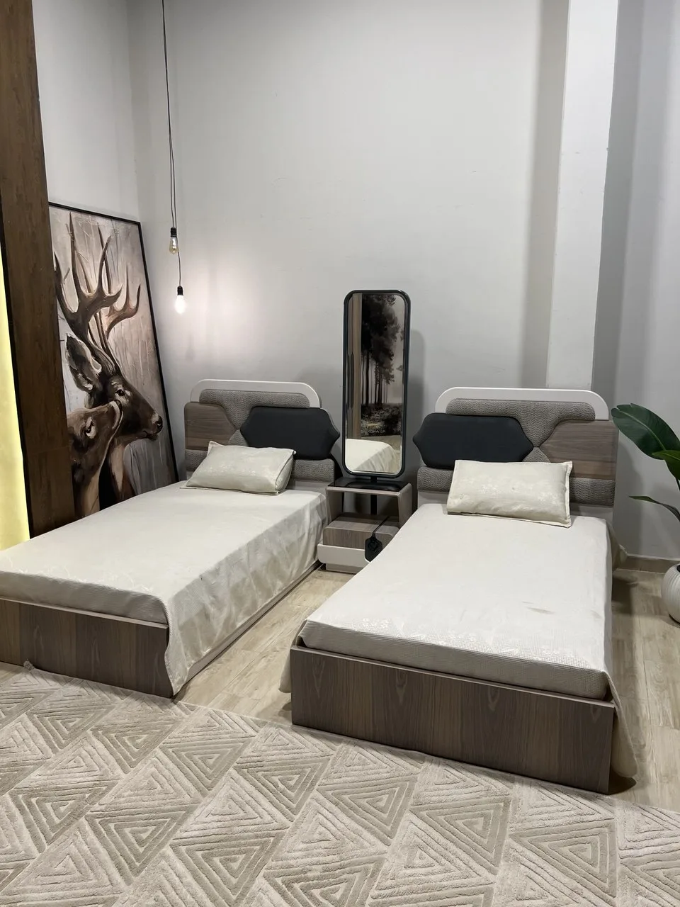 2سرير 120سم + كمود 50سم + دولاب 150سم +برواز مرايا طولي .