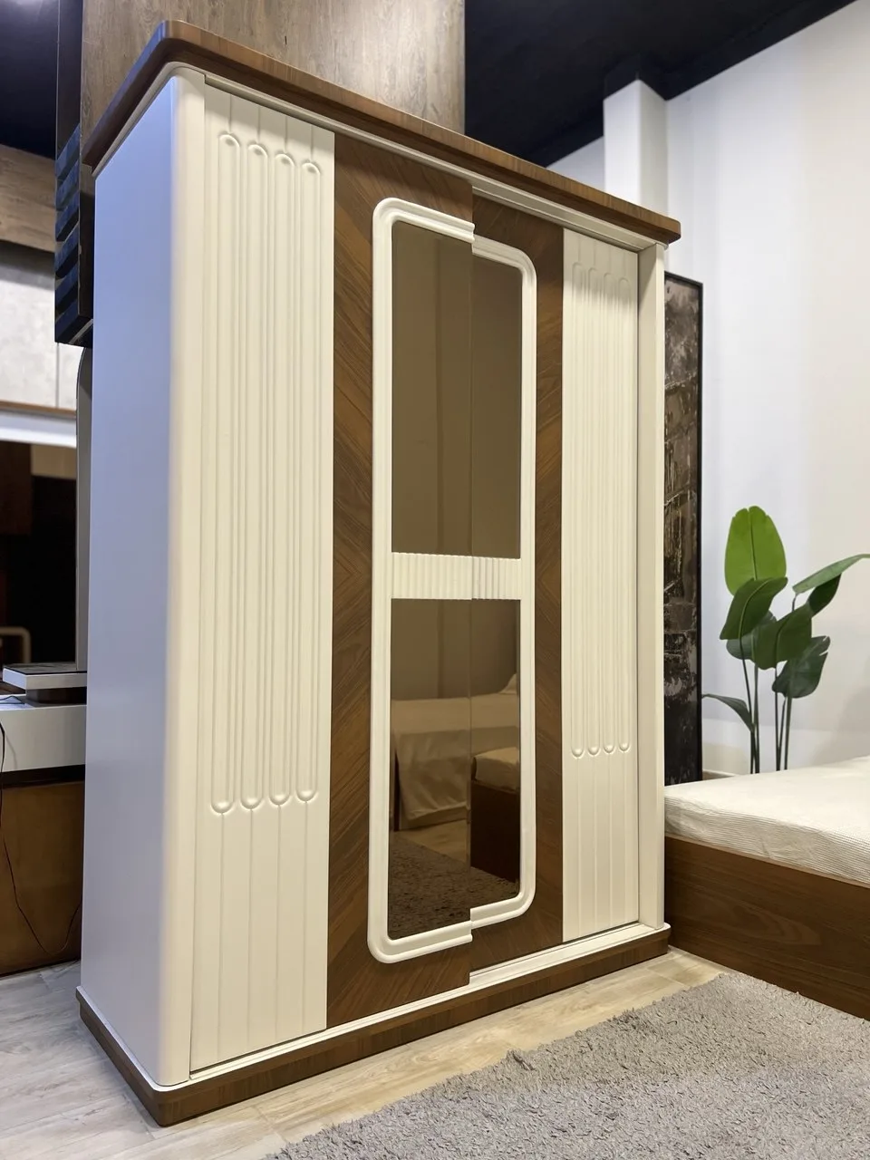 ألوانها هادية ومودرن، والدولاب والسرير معمولين بتفاصيل عملية تضمن استخدام مريح وشكل أنيق في نفس الوقت. اختيار مثالي لشاب يحب النظام والشياكة بدون أي تعقيد.