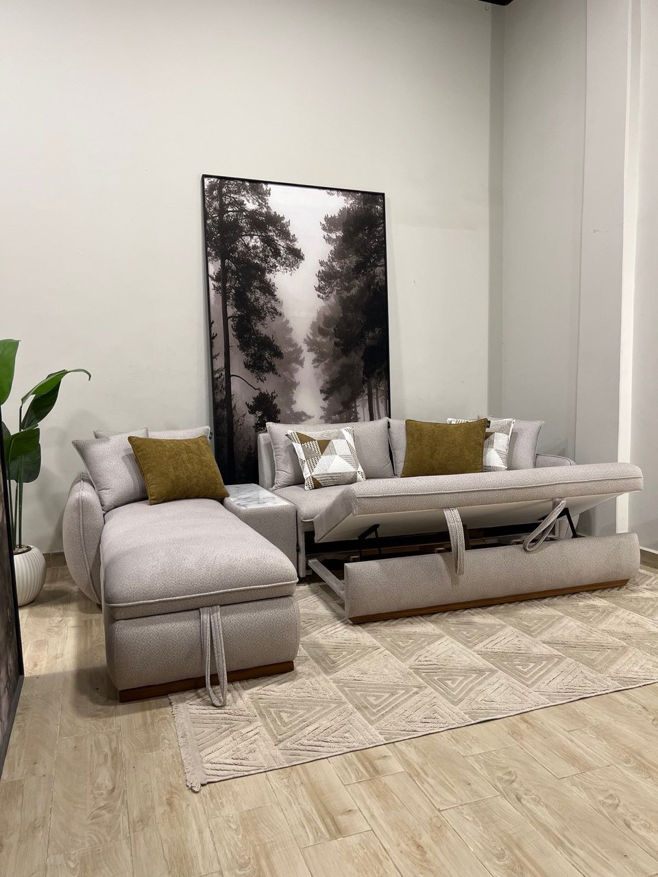 غرفة المعيشة أنيقة جدًا والكنب مريح بشكل رهيب. ضيوفي كلهم سألوني من وين شريتها! شكرًا لكم على الذوق والخدمة.