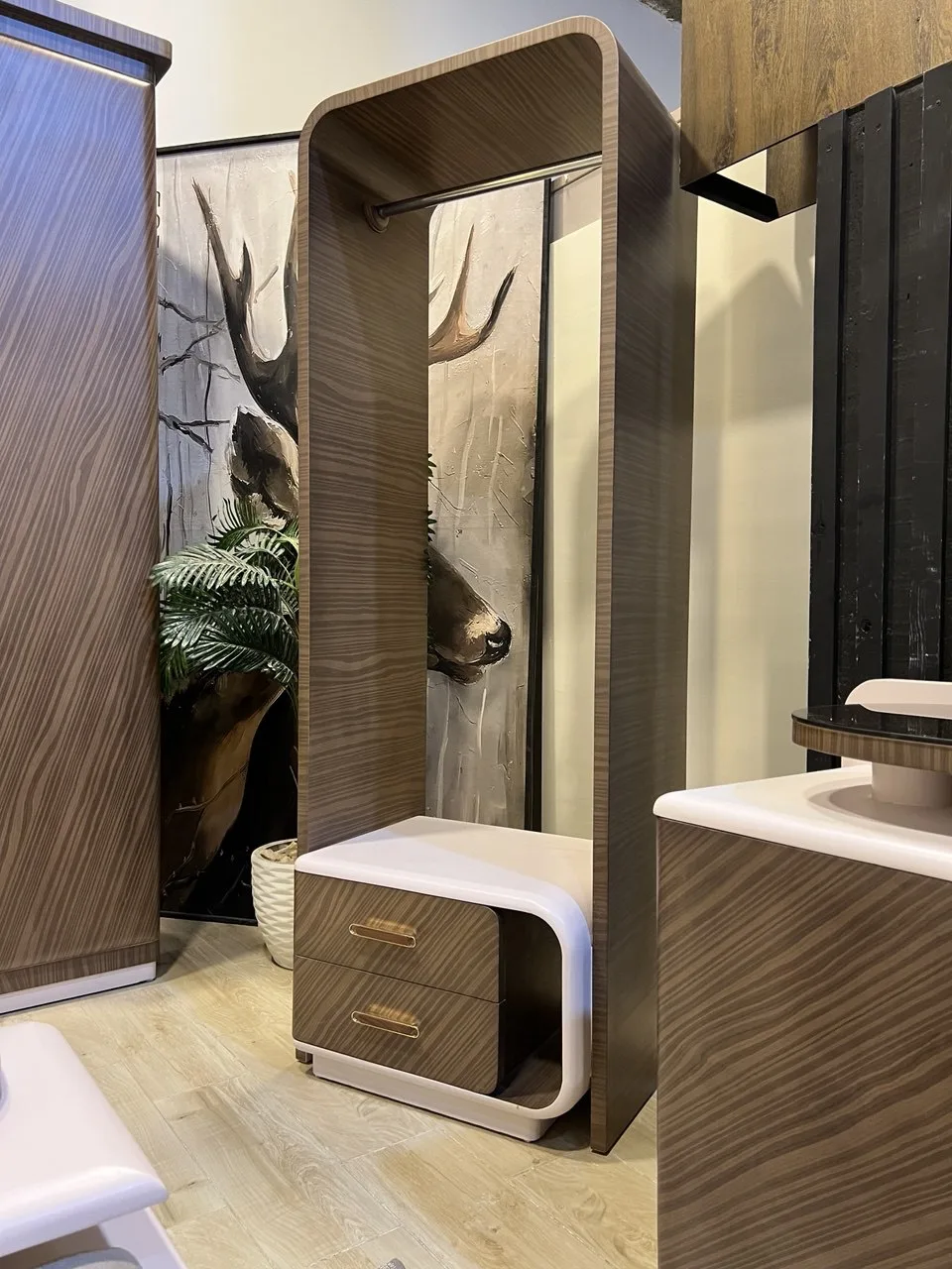 طلبت غرفة ملابس كاملة وتصميمها كان منظم ومريح جدًا. كل شيء مرتب وسهل الوصول له، وفوق هذا شكلها راقي.