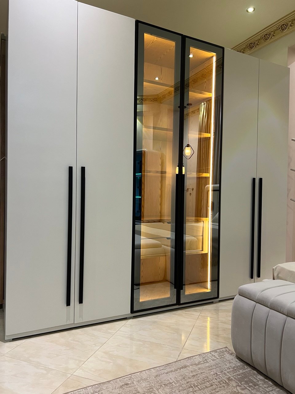 طلبت غرفة ملابس كاملة وتصميمها كان منظم ومريح جدًا. كل شيء مرتب وسهل الوصول له، وفوق هذا شكلها راقي.
