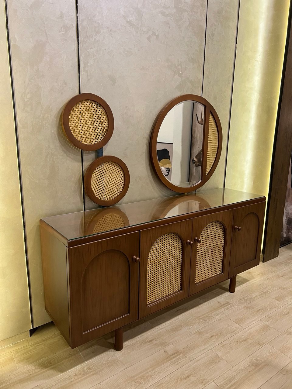 بوفيه 200سم + نيش 125سم + 3برواز مرايا مُعلق + تربيزة 200سم +6 كرسي .